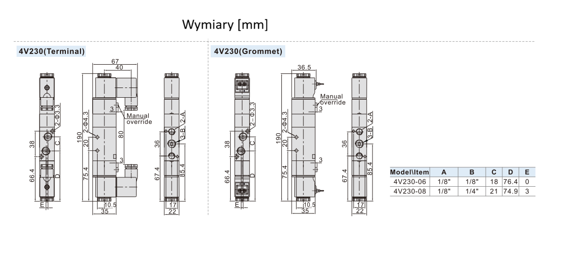 Medium: sprężone powietrze (przefiltrowane min. do 40 mikronów)