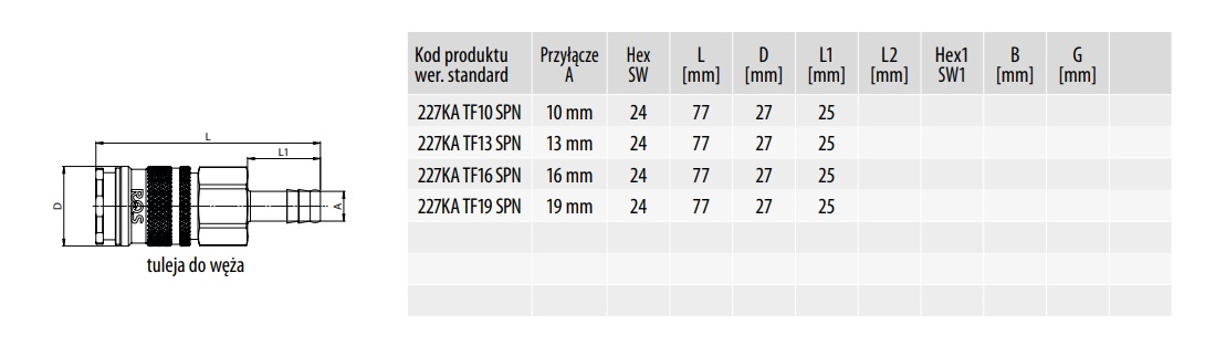 Przyłącze: Choinka do węża 13 mm wewnątrz