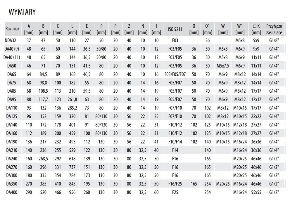 medium sterowania napędu: sprężone powietrze przefiltrowane