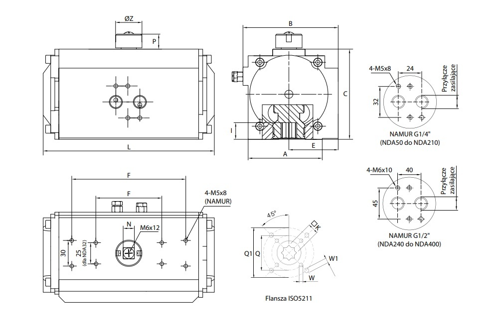 przyłącza do zaworu: flansza ISO5211 (F03-F05), kwadrat zgodnie z DIN3337