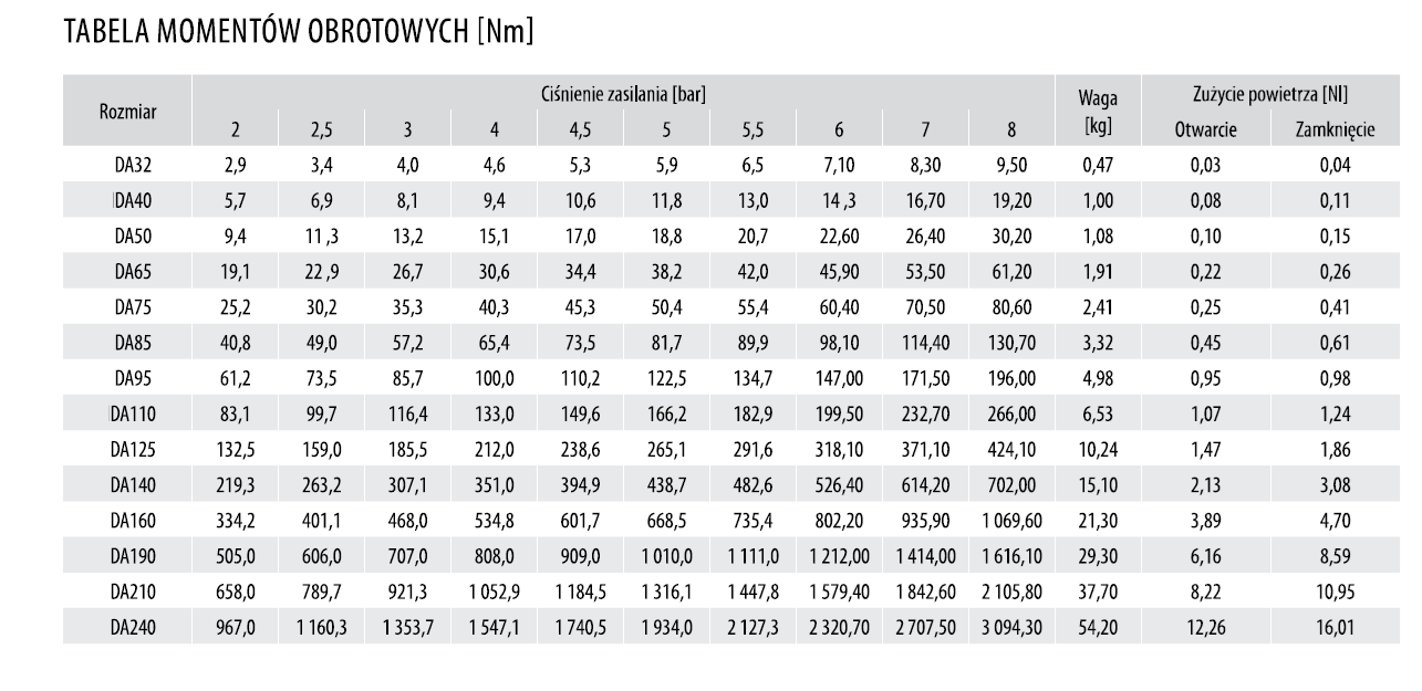 moment obrotowy (przy ciś. zasilającym 6 bar): 45,9 Nm