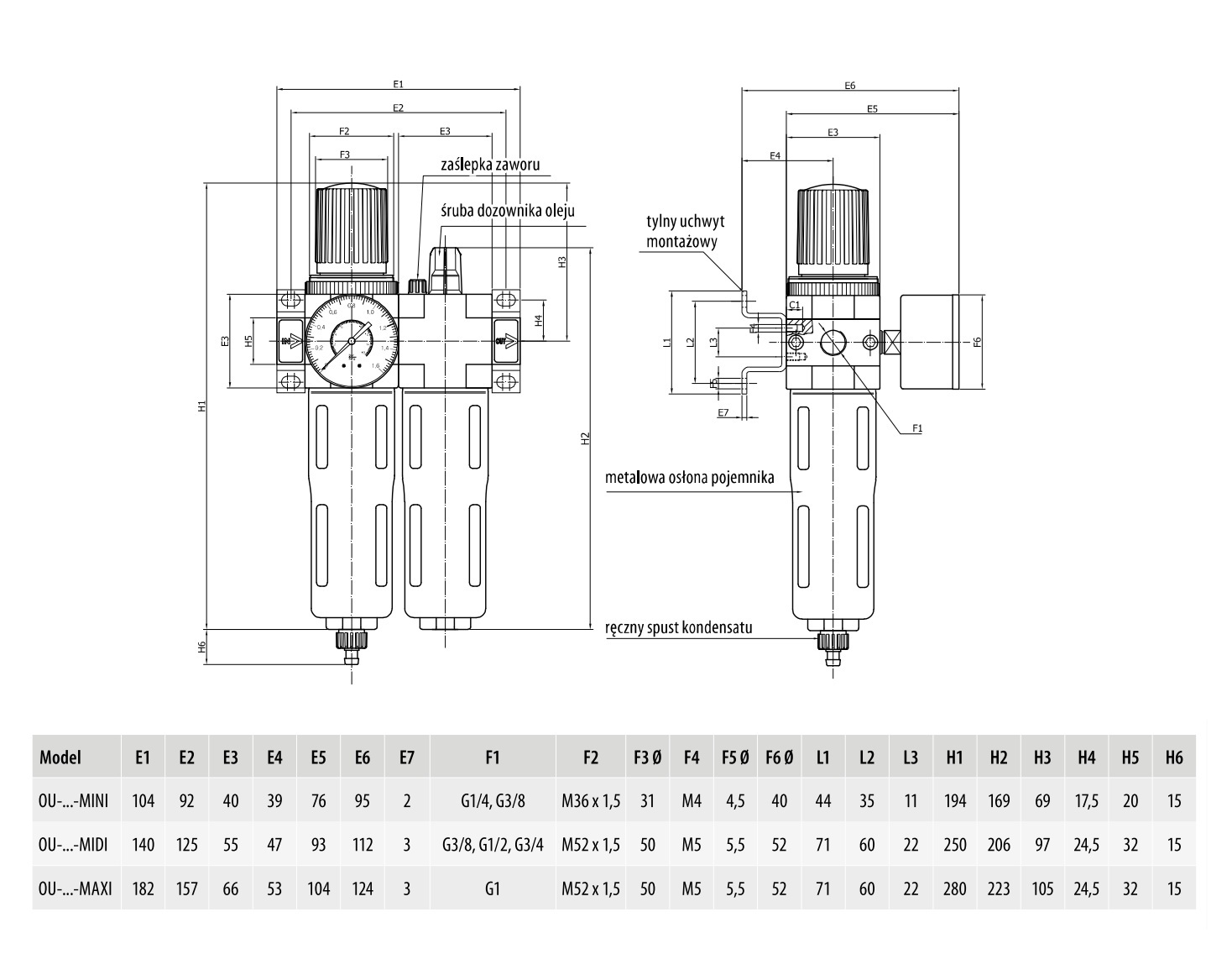 Blok przygotowania powietrza OU-1/2-MIDI Rectus