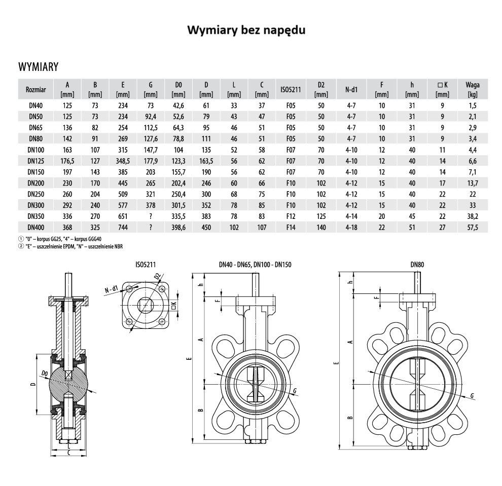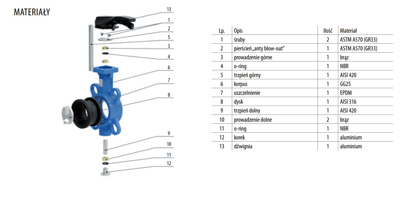 DN 65, z dźwgnią, uszczelnienie EPDM, system „anty blow-out”