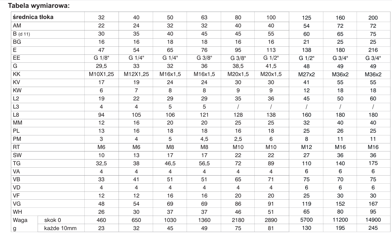 Medium: sprężone powietrze przefiltrowane min. do 40 mikronów
