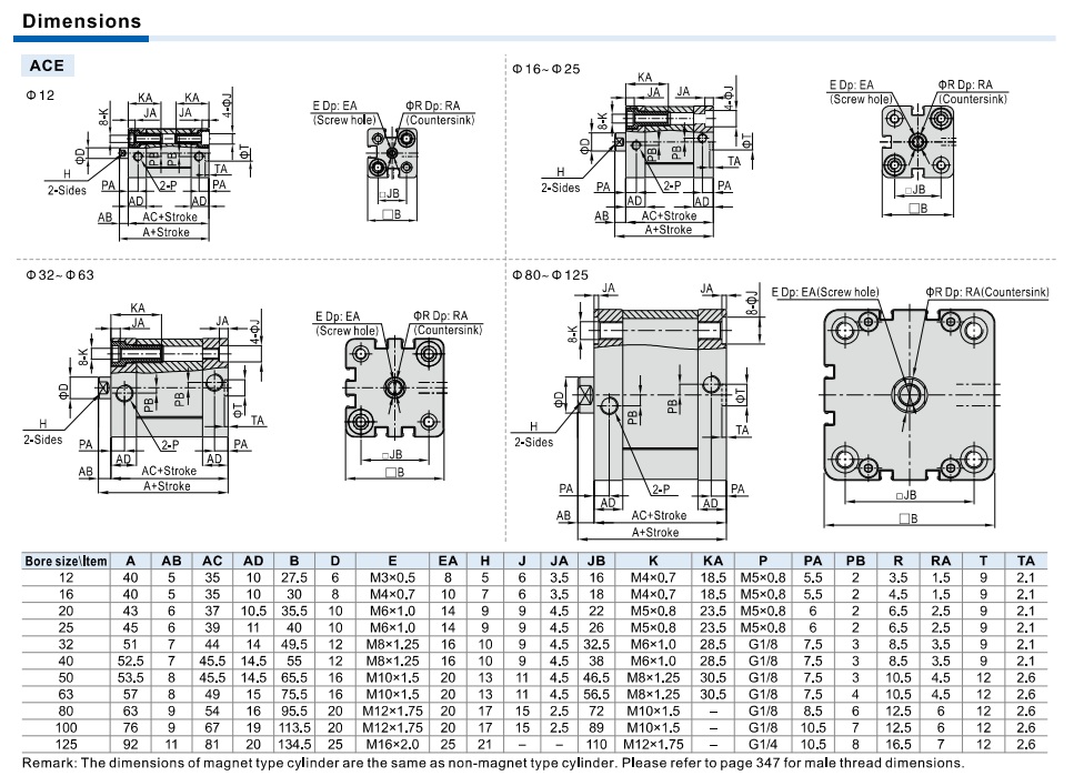 Siłownik ISO 21287 średnica 25 mm, skok 50 mm, gwint tłoczyska