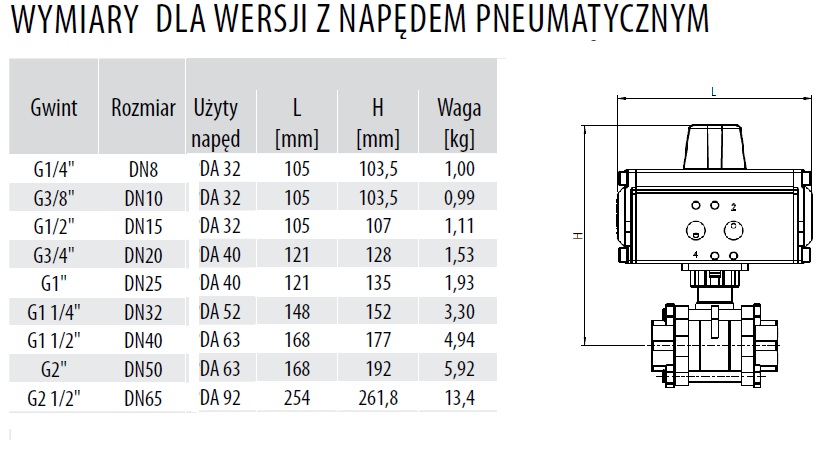 PTFE, sterowany napędem dwustronnego działania