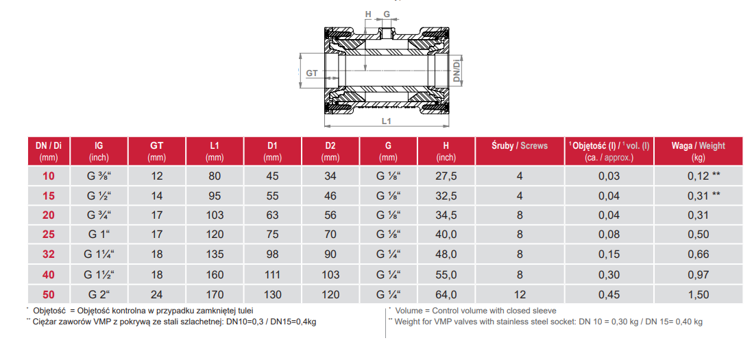 Minimalna różnica ciśnień: 2,5 bara - ciśnienie sterujące powinno być min 2,5 bara wyższe od roboczego